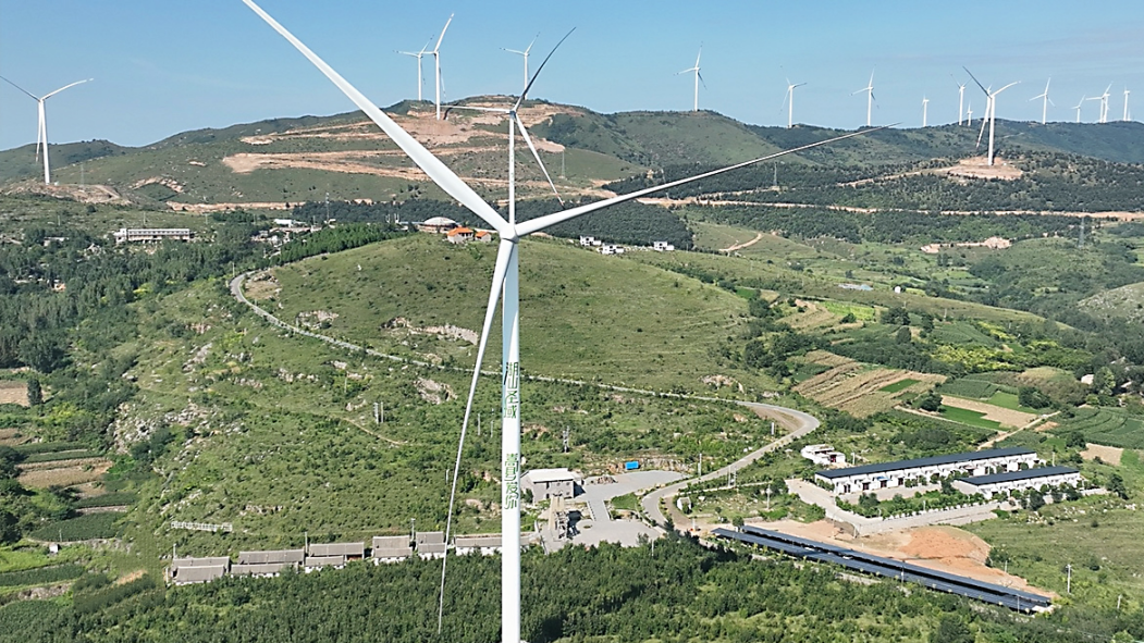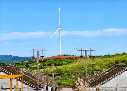 (河南省洛阳市嵩县节能小镇) 在嵩县连绵起伏的山脉上,挺拔摇曳的风机与蓝天远山交相辉映,云海肆意翻腾,构成“湖山圣域”一道亮丽的“风”景线。风机凭借“体型”优势和超高“颜值”,创新将“湖山圣域、嵩县爱你”等当地文旅形象标语彩绘于风机塔筒之上,把风机变成文旅宣推载体,“绘”出乡村振兴独特“风”景线,同时与已建成的“节能小镇”“石头部落”等一道融入文旅产业,打造出一条集风车观光、果园采摘、民俗体验等为一体的乡村旅游路线。嵩县从一个贫穷落后的贫困山区逐步发展为美丽乡村、国家3A级景区,入选河南首批自驾旅游宝藏县域名单。
